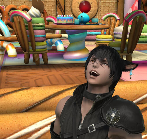 Background: A wandering Miqo'te who left his Keeper tribe due to being one of the few potential Nuhns and preferring the life of an adventuring Tia. He ended up in Kugane where he started a new life. Kaito picked his new name and surname Katagawa to help feel integrated into Doman society. He ignored Hydaelyn's first few attempts to bring him into the adventurer scene until he finally relented, having spent most of his money on snacks and needing a new source of income.Character origins: Kaito (@KaitoKatagawa) is a body double OC I made based off my favorite Borderlands 3 character Katagawa Jr.Random fact: This cat loves snacks. The best day of his life was when he found the giant snack area in the pixie dream land and his ultimate retirement dream is to set up a candy store in his apartment.